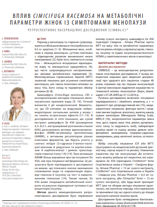Вплив cimicifuga racemosa на метаболічні параметри жінок із симптомами менопаузи. Репродуктивна ендокринологія №2 (52) квітня 2021р.