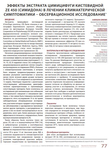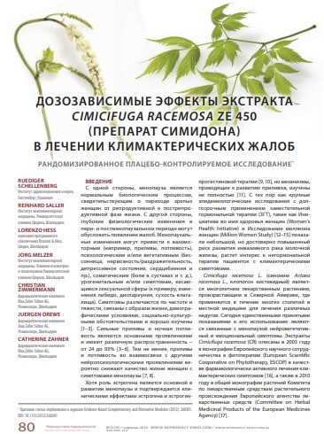 Ефекти екстракту циміцифуги гроновидної Ze 450 (Сімідона форте) в лікуванні клімактеричної симптоматики. Репродуктивна ендокрінологія №6 (32) 2016р.
