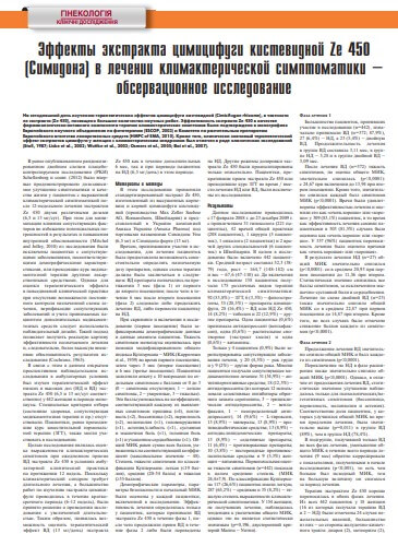 Ефекти екстракту циміцифуги гроновидної Ze 450 в лікуванні клімактеричної симптоматики. Газета «Гінекологія, Акушерство, Репродуктологія» Березень 2017р.
