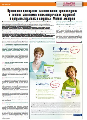 Застосування препаратів рослинного походження в лікуванні симптомів клімактеричних порушень і ПМС. Газета «Гінекологія, Акушерство, Репродуктологія» Жовтень 2016р.