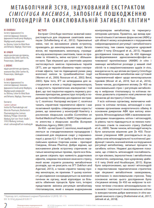Метаболічний зсув, індукований екстрактом Сimicifuga Racemosa, запобігає пошкодженню мітохондрій та окисної загибелі клітин. Репродуктивна ендокринологія №3 (59) червня 2021р.
