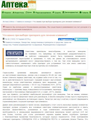 Що важливо при виборі препарату для лікування клімаксу? Тижневик Аптека № 22 (1043) 13 червня 2016р.